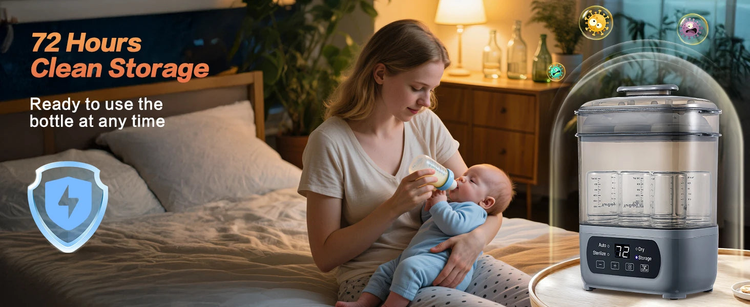 Give your baby the safest, most hygienic feeding experience with our 4-in-1 Electric Steam Sterilizer and Dryer. Designed for the modern parent, this large-capacity appliance takes the worry and work out of bottle cleaning, ensuring every bottle, pacifier, and breast pump part is perfectly sanitized and ready to use.