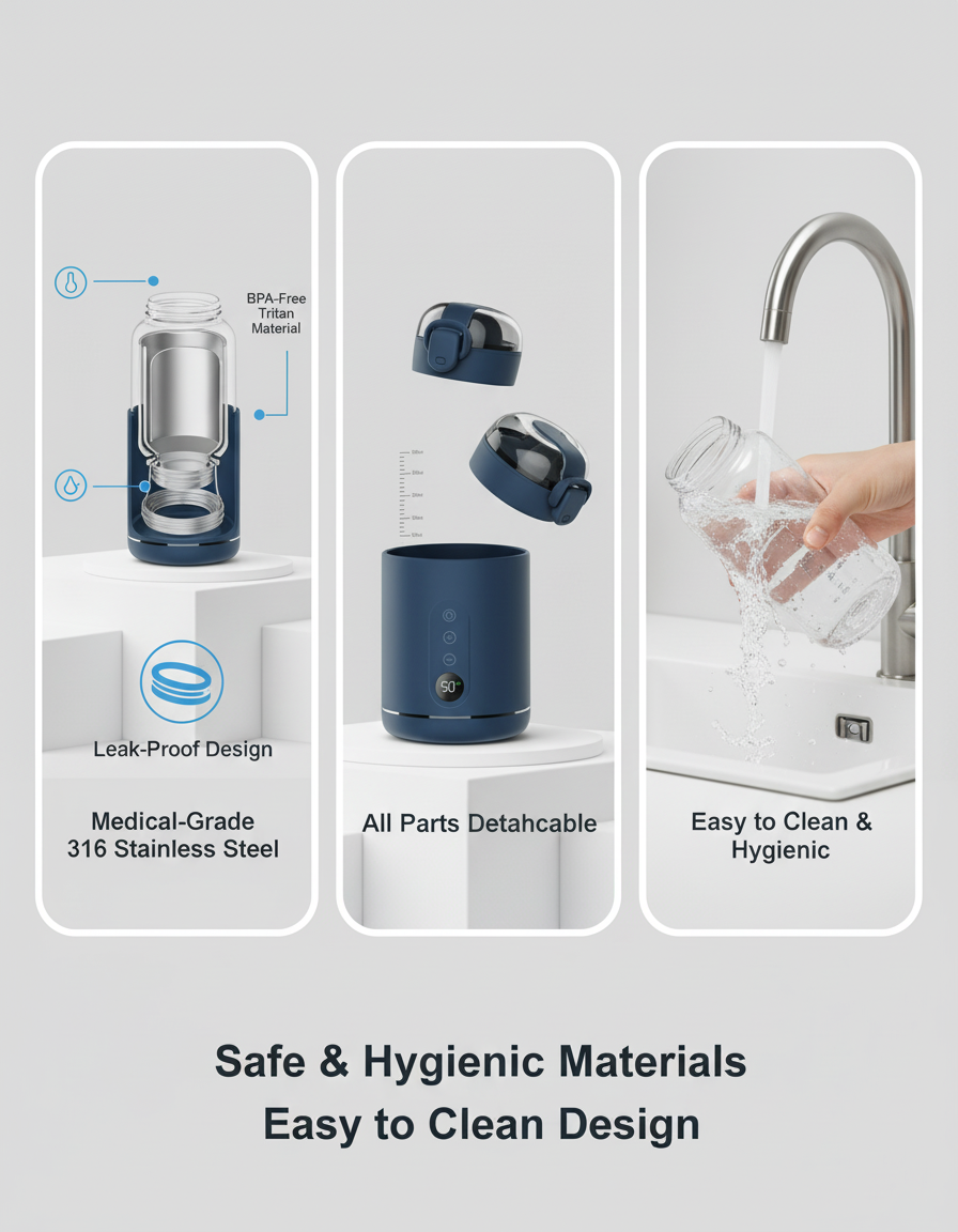 Safe for Baby: Made with 100% BPA-Free, food-grade materials. The inner container is crafted from medical-grade 316 stainless steel for superior purity and easy cleaning.